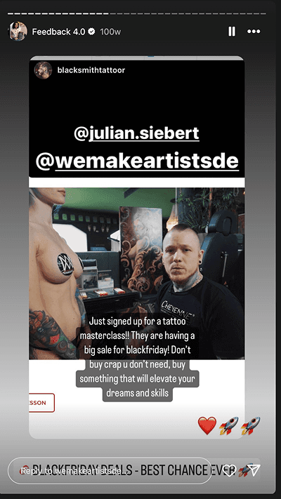 Julian Siebert, also known as "Corpsepainter," is one of the world’s top tattoo artists. With over 100 extraordinary backpieces setting new benchmarks, he has earned a reputation as a specialist in large-scale, detail-rich tattoos. In his workshop, Julian shares his expertise and techniques to efficiently plan and execute complex projects. He will show you how to master even the most challenging designs while improving your stamina and precision. Julian’s focus on quality and creativity inspires tattoo artists to redefine their own standards.